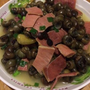 生姜切片,葱白切段,葱姜先下油锅爆香,加入螺蛳爆炒一下,去腥,然后盛出待用