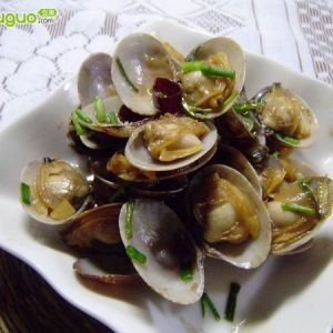 放入花蛤煸炒,加少量生抽,再煸炒一二分钟即成