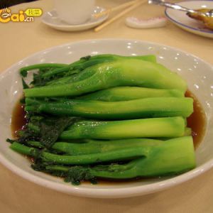 把洗净的芥兰放到沸水里烫熟,捞出待用。