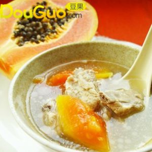 木瓜去皮、去籽后切成和排骨大小差不多的木瓜条。排骨炖大约一个半小时后,将木瓜放入锅中继续炖45分钟。