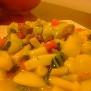最后下年糕。根据自己的喜好加水控制汤汁,并调味。