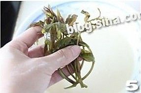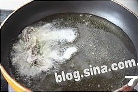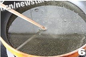 锅中放入油,油温看筷子的头放在油锅里四面起小泡就可以下锅炸了