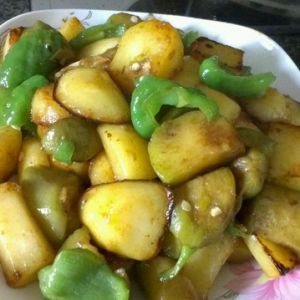 加生抽炒土豆和茄子,再加点淀粉。然后放入青椒,再根据个人的喜好适量加点白糖,就不会那么干。就这么简单哦!
