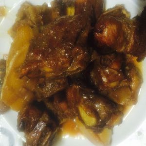 锅里倒入适量油,慢火将冰糖煮融,记住要小火,(熙姐在闹,熙麻一时没注意火候),煮到稍见泡泡就可以了