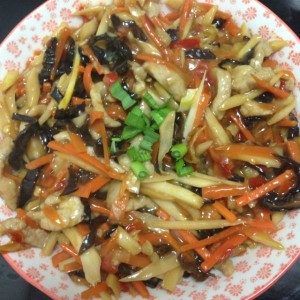里脊肉切细丝,盐,水淀粉,腌制备用,生抽醋料酒糖调制鱼香酸甜酱汁