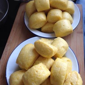南瓜泥 温热时加酵母 加高筋粉 揉成面团