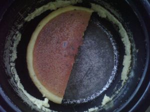大概2、3分钟后煮饭变为保温,拿湿毛巾堵上电饭锅的排气孔,闷20分钟,再按煮饭键,等跳了以后,再煮饭,直至20分钟后,用牙签扎蛋糕试试,如果带出来蛋糕糕体,在继续加热,如果没有,那就熟了,拿出来,直接倒在案板上,蛋糕就大功搞成了。