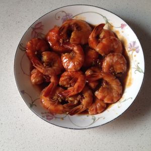 放油,倒入葱姜末(别糊)煸香后放入虾,放番茄酱少许加一点儿酱油上色后,放少量水加盖小火焖,最后放水淀粉勾芡