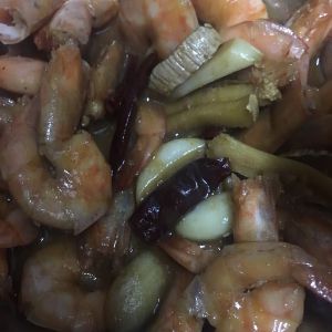 锅里倒油,加入姜蒜爆香,把腌制好的虾放入锅中,炒出虾油