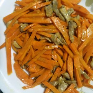 放一点油进锅里,将萝卜和肉丝翻炒,炒好之后加一点点盐进去就可以啦!