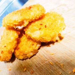 土豆饼裹上鸡蛋液,再裹上面包糠