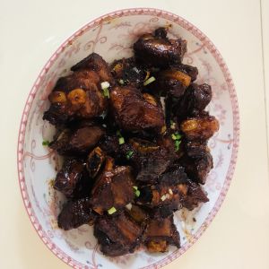 放入生抽2调羹,老抽1调羹,醋1调羹