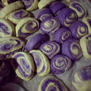 将面团拿出排气,取四分之一搓成圆球,用擀面棒擀成圆形并叠加在一起卷起来用刀切开一段大概三厘米,放至蒸锅中蒸半个小时左右就可以出锅啦~