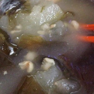 放排骨 姜片 薏仁米 足量清水煮开,约三十分钟后转小火,加海带煮20分钟小火.再加入冬瓜,煮五分钟小火即可。加盐调味!