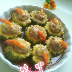 蒸锅加入适量清水烧开后将装有肉馅苦瓜的盘子放入其中蒸10分钟左右即可。在蒸的中途打开锅盖,将蛋液徐徐浇到肉馅儿苦瓜上