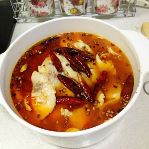 再放点麻椒和8个辣椒,2汤勺郫县豆瓣,炒出红油。