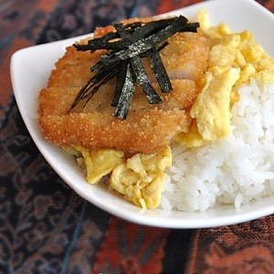 准备炸猪排:准备三个盘子,各装上面粉,鸡蛋液,面包糠