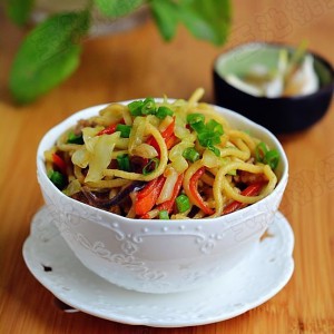捞出煮好的面条放入菜中,慢慢翻炒均匀。
