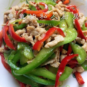 肉丝炒的七分熟倒入辣椒 加入适量盐和糖