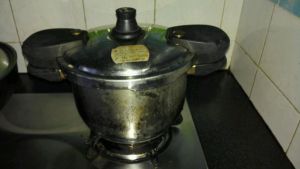 高压锅蒸熟后用料理机打碎,然后放进面包机,选和面程序15分钟。