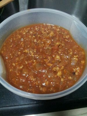热油锅下洋葱丁炒香变色再加肉末翻炒,加料酒,耗油,酱油,老抽上色,接着加番茄丁不停炒啊炒,番茄会出汁,最后加水加盐熬浓稠,我加了一点淀粉收汁,最后出锅时加点黑胡椒调味。。。其实没有什么步骤,随便乱煮就行了!!这是成品,中间没有多余的手拍照!!晚上可以吃意大利面了,哈哈……