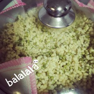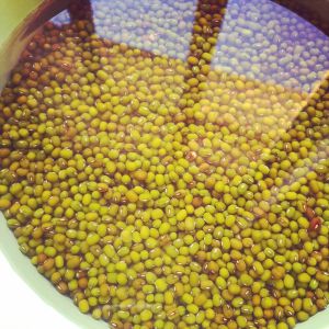绿豆,浸泡一天一夜,泡发了绿豆皮容易剥落。
