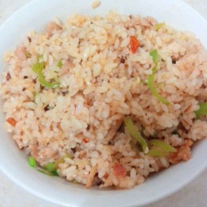 迅速放入青椒米饭翻炒一会,中途加盐。