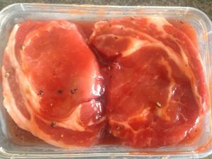 猪肉洗干净放入盒子里,放叉烧酱、盐、胡椒粉、蜂蜜、玫瑰露均匀涂抹,腌制一天,放入冰箱冷藏腌制。