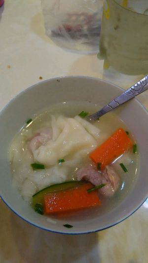 加黄瓜关火,加盐和鸡精调味,盛碗洒上葱花!