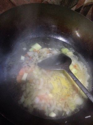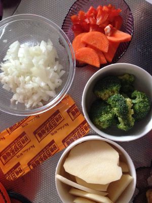 炒胡萝卜,洋葱,倒水,加咖喱块,大火烧开