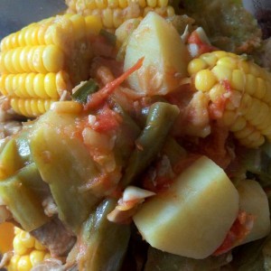 把苞米,西红柿,土豆,辣椒切块儿,茄子用手掰,比较容易入味。然后锅热后放油,放入苞米翻炒一会儿后放西红柿。