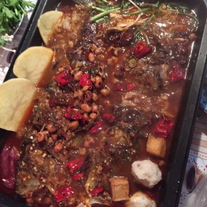 先来个成品 这是烤鱼吃的差不多开始涮菜了