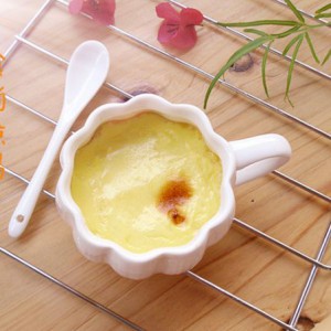 把烤盘放入预热好的烤箱中,中层,上下火170度,烤20-25分钟,仔细观察,布丁表面有焦黄色的斑点即可。