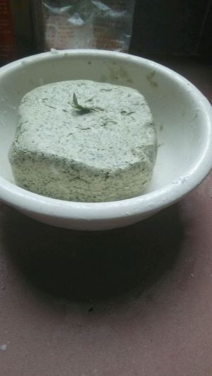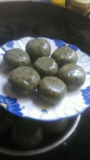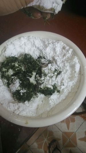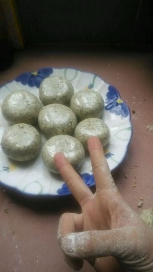把打烂的艾叶放入糯米粉中 开始搓粉