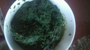 把沥干水的艾叶放进搅拌机打烂适当加入水