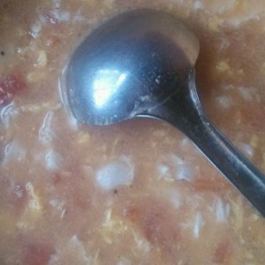 打入鸡蛋、搅散鸡蛋、1勺盐、3滴酱油、黑糊椒末