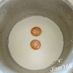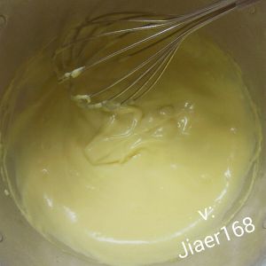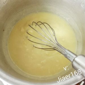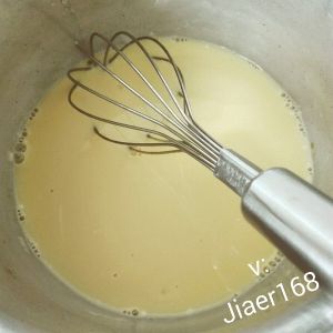 边加热边不断搅拌,直到蛋奶液变得浓稠细滑状态。