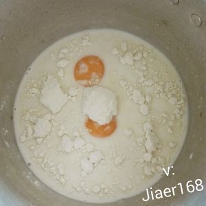 保持小火,一边加热一边搅拌,否则可能会煮成蛋花汤哦!