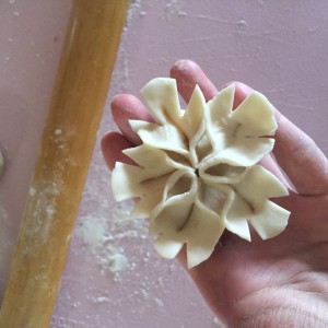 用剪刀剪三下 很漂亮吧 放蒸笼里蒸二十分钟 配好蘸水 美观又好吃