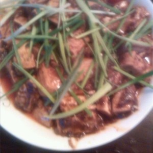 大火收汁勾芡,出锅!上面放蒜苗丝!豆腐入味还不碎!简单吧!