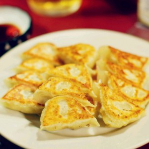 平底锅放少许油,油热后把生饺子放入,记住,平面朝下。