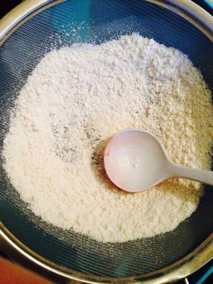 用过滤网,把干湿粉过滤出细粉备用(可用勺子或手按压糕粉,不然好难的)