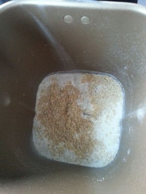 2. 除黄油以外的食材全部投入到面包机桶内,【也可以加2滴香草精】加入126g水搅拌15分钟后再放入黄油搅拌20分钟【绝对会出膜的哦!】