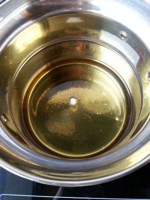 6. 锅中烧油,放一个小面团观察便可以试出油温