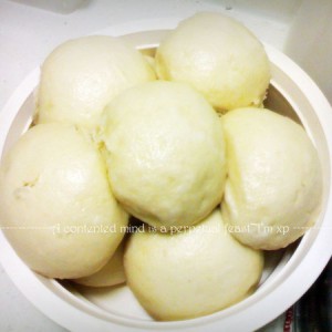 取出揉出气孔分团,放入自己喜欢的配料,蒸制15分钟。