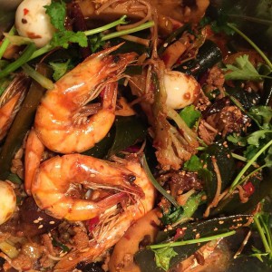 临出锅时淋上麻油、芝麻、和香菜便可了!