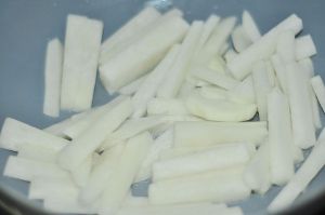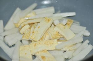 豆腐煸炒至萝卜变脆,大概3分钟左右。