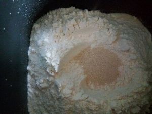 除了黄油以外,先液体,再糖和盐对角放,再放高粉,高粉中间挖一个洞,放酵母,再盖上,汤种80克也一起放进去,面包机和面功能30分钟,