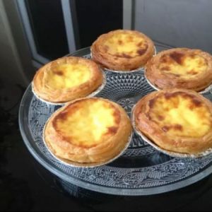如果想加葡萄干之类的,直接放挞皮上面即可,再把挞液倒入蛋挞皮中,倒入7,8分满即可。