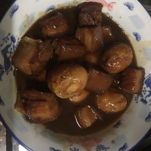 加料酒、生抽、冰糖(或白砂糖)、啤酒(或高汤、白开水),没过肉块,盖锅盖大火烧开,后将煎好的鸡蛋放入,小火焖30分钟!